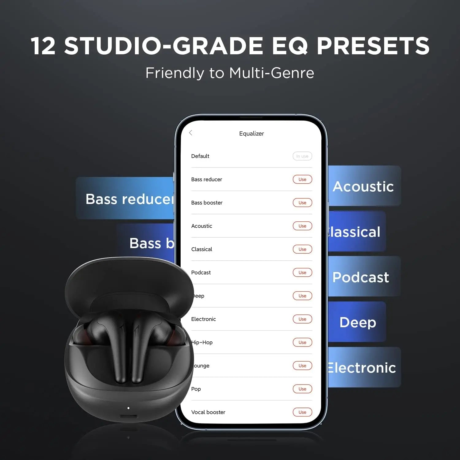 The ergonomic design ensures a comfortable, secure fit for all-day wear, whether you’re working, commuting, or exercising. Get up to 28 hours of playtime with the included charging case, and recharge easily with wireless charging support.