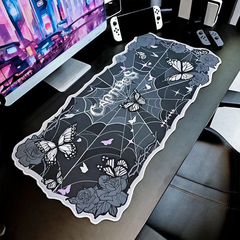 Elevate your workspace with this stylish Black Butterfly Kawaii Gaming Mouse Pad. Designed to add both elegance and functionality, this large desk mat provides ample room for your laptop, mouse, keyboard, and other essentials. Its high-quality, waterproof surface is perfect for handling accidental spills, while the non-slip base keeps everything securely in place during intense gaming sessions or focused work. The subtle butterfly design brings a touch of aesthetic charm to your desk without compromising professional appeal, making it an ideal choice for gamers and office users alike.