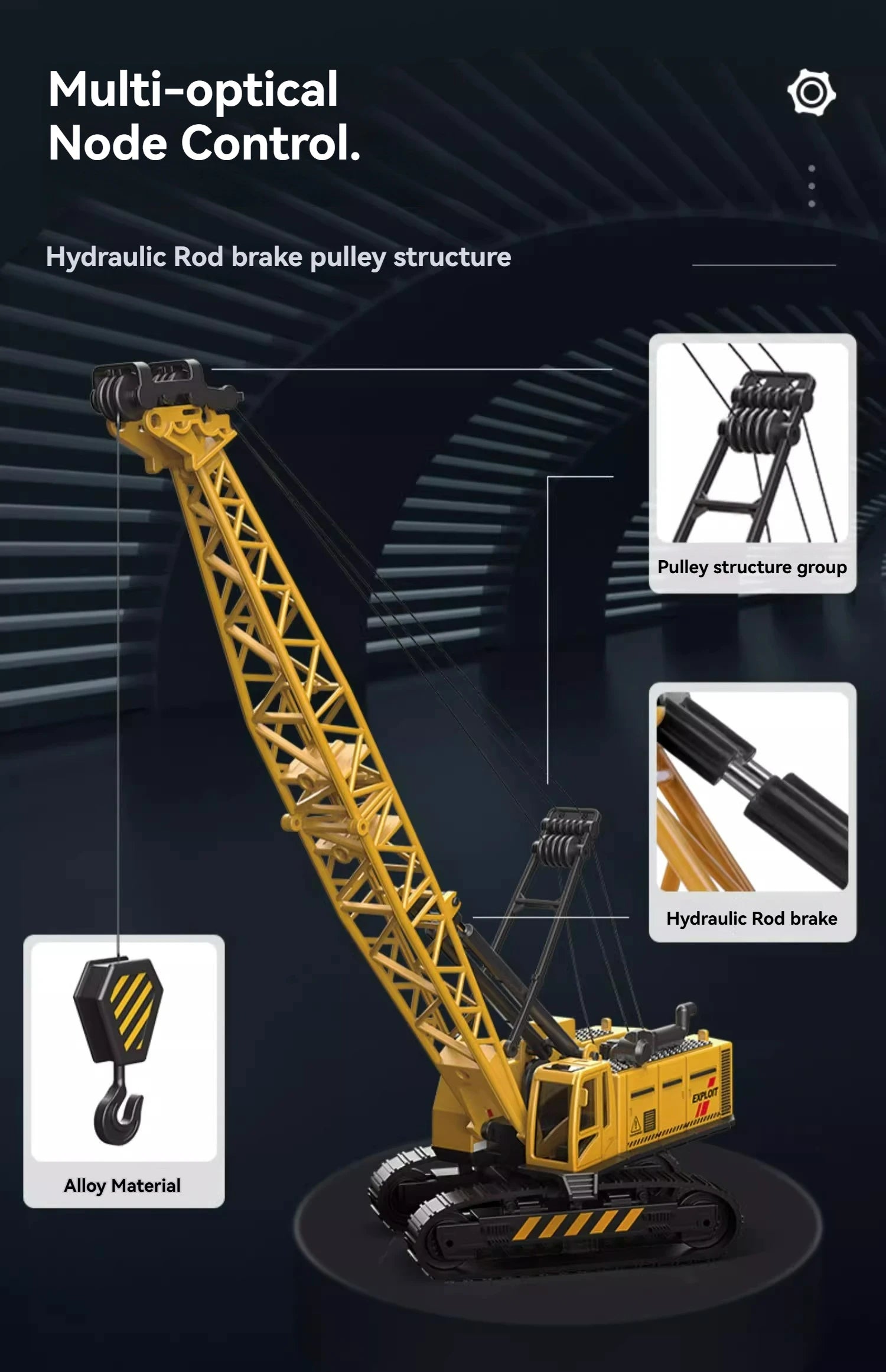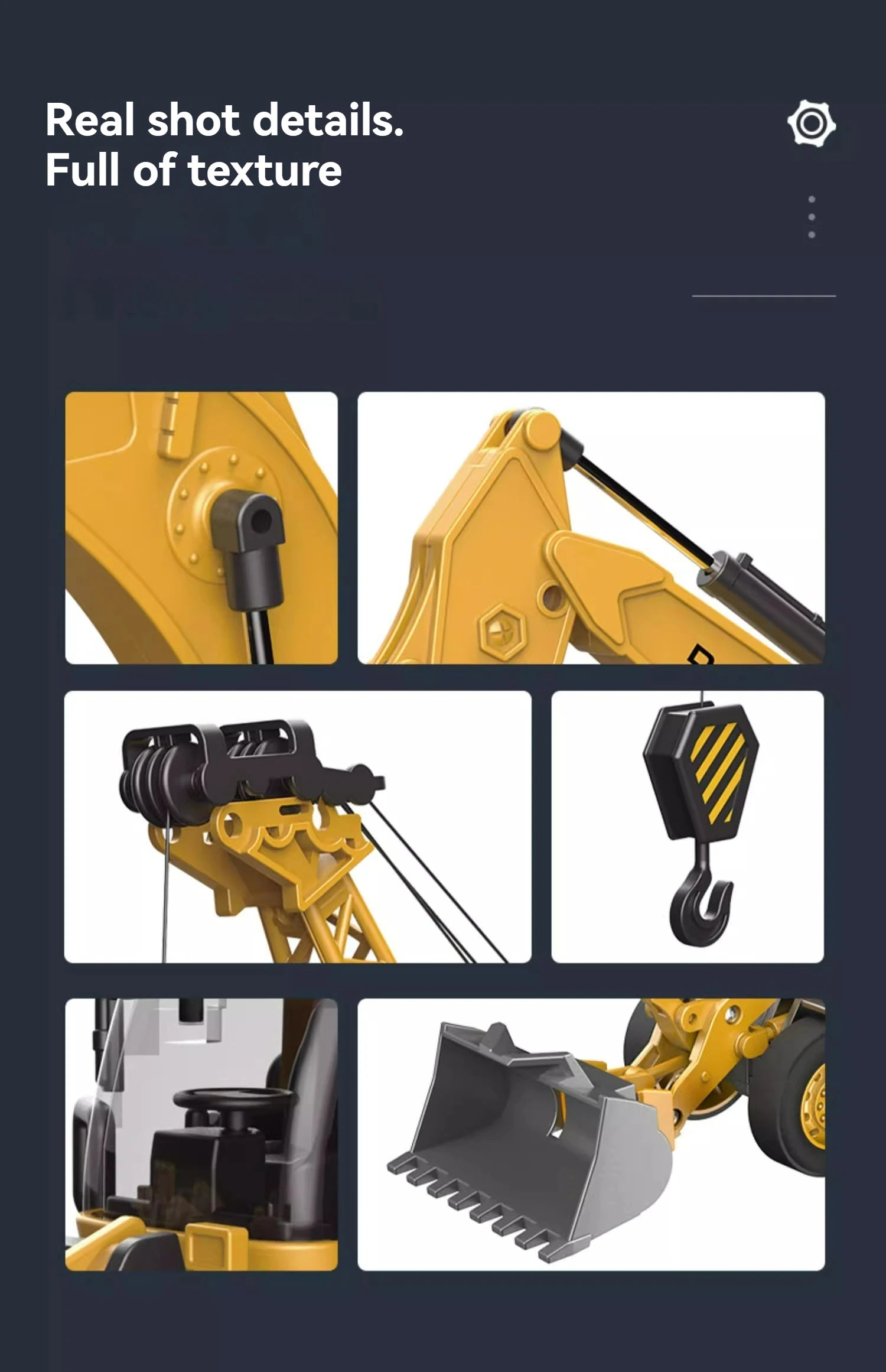 - Design: Realistic construction model with loader, tractor, and excavator features.