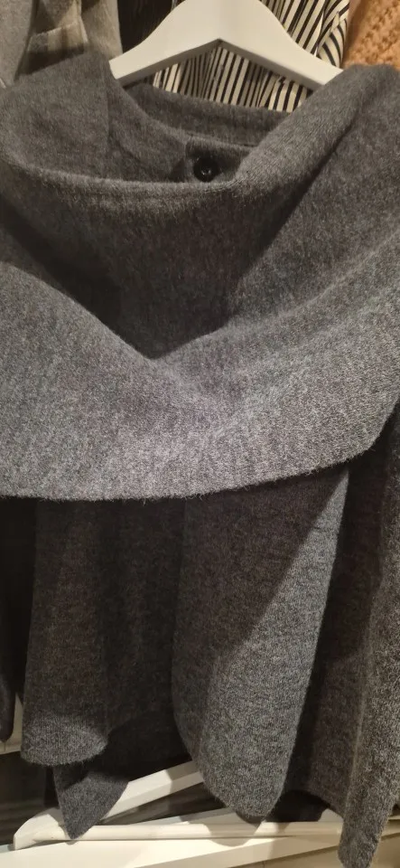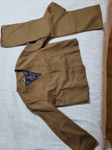 The Brown has a super tchip fabric and not qualitative. No button and the scarf is mas wide. Dour