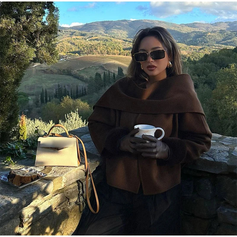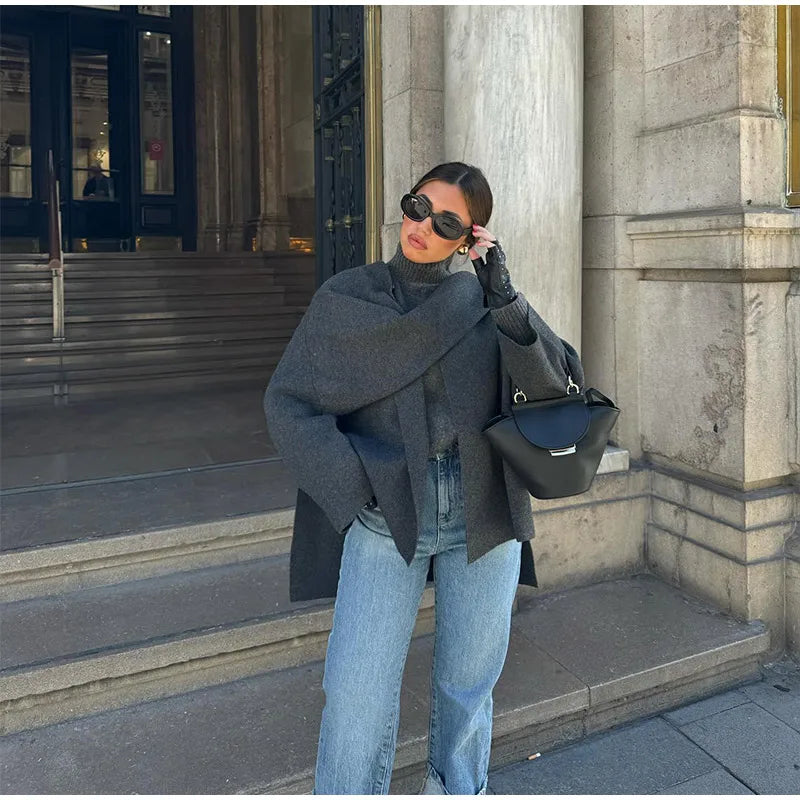 Stay warm and stylish with this elegant woolen scarf collar jacket for women, designed for chic autumn outings. Crafted from premium wool, this long-sleeved overcoat features a fashionable side split and casual fit, making it perfect for layering over any outfit.