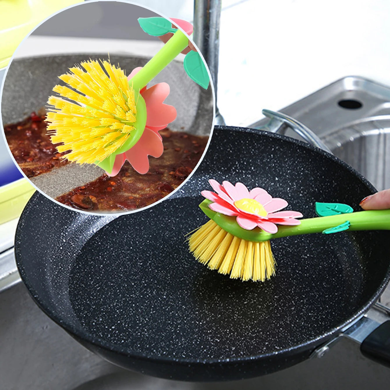 Flower Shape Kitchen Pot Cleaning Brush with Handle and Holder