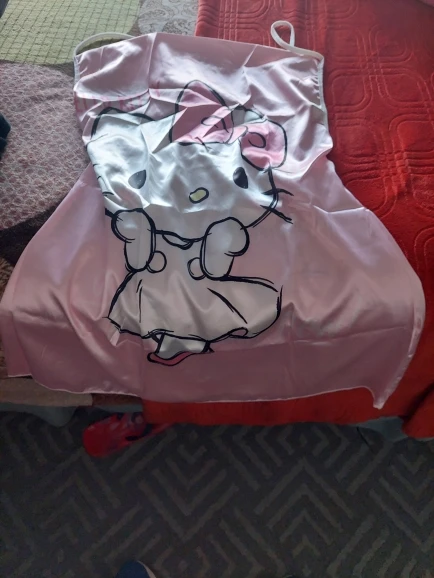 Embrace playful sophistication with the Hello Kitty Satin Mini Dress Pajama. Designed for the modern woman, this off-shoulder mini dress combines the charm of Hello Kitty with the allure of summer fashion. Crafted from a satin-smooth surface, it features a bow knot accent, lace detailing, and a flirty silhouette perfect for any casual party or cozy night. The breathable fabric ensures comfort during warm summer nights, while its sexy yet cute design makes it versatile for loungewear or as a statement party outfit. Elevate your wardrobe with this Hello Kitty-inspired summer essential.