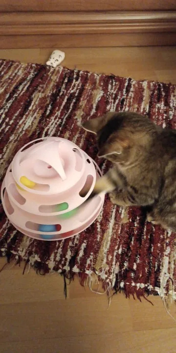 Keep your cat engaged, entertained, and mentally stimulated with this Multi-Level Cat Tower Track Toy! Designed to satisfy your cat’s natural hunting instincts, this interactive toy features three durable levels with brightly colored, rolling balls that spin and rotate as your cat paws at them. Perfect for solo play or for multiple cats, it’s a great way to promote active play, improve focus, and reduce boredom. Made with sturdy, pet-safe materials, the toy remains stable during intense play, while the open design makes it easy for cats of all sizes to interact with.