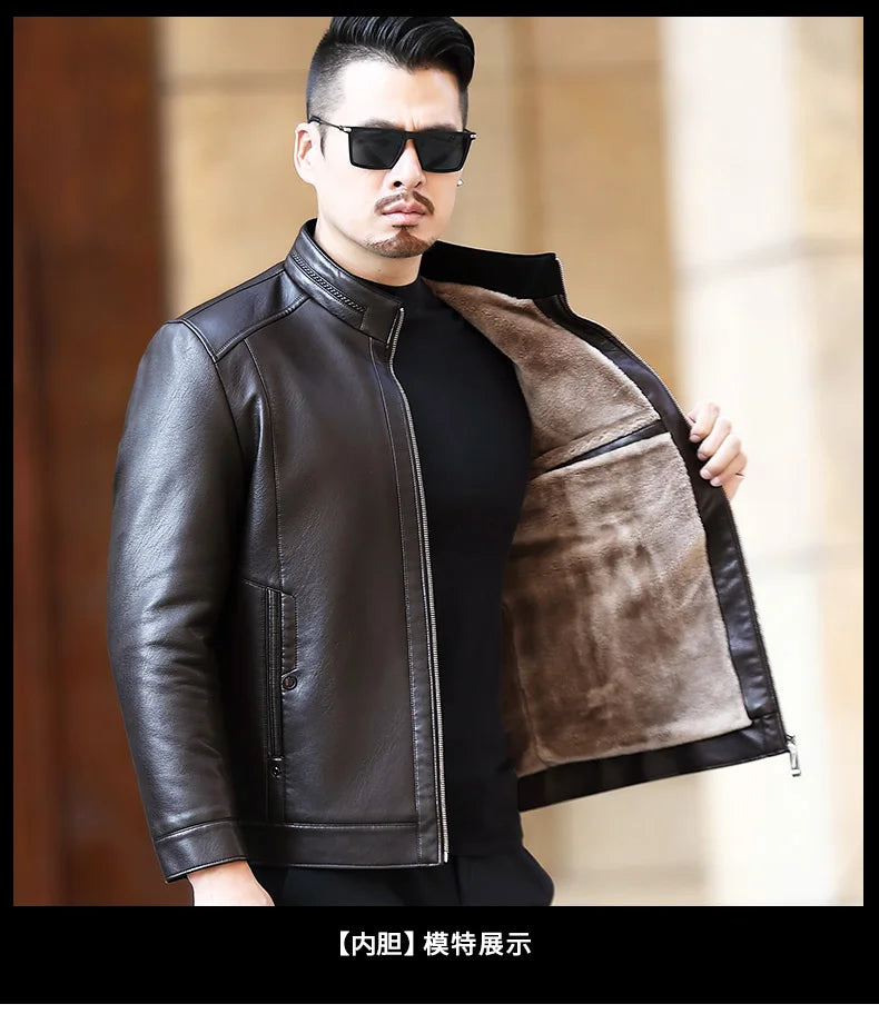 Stay stylish and warm with the YX-221 Natural Leather Jacket, exclusively available at SuperiorDeals. This premium men's jacket is crafted from high-quality natural leather, offering a sleek, sophisticated look for any business casual or formal occasion. Designed with a stand-up collar, this jacket provides extra warmth and comfort, making it perfect for colder weather.