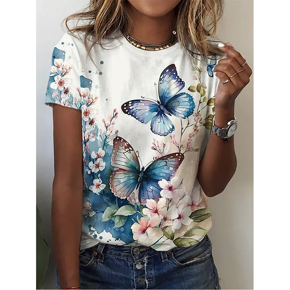 Stay stylish and comfortable this summer with the New 3D Butterfly Print T-Shirt for women. Featuring a stunning butterfly print design in vibrant colors, this oversized summer top adds a touch of whimsy and fun to your wardrobe. The O-neck cut and short sleeves make it perfect for hot days, offering a relaxed fit that pairs easily with jeans, shorts, or skirts.