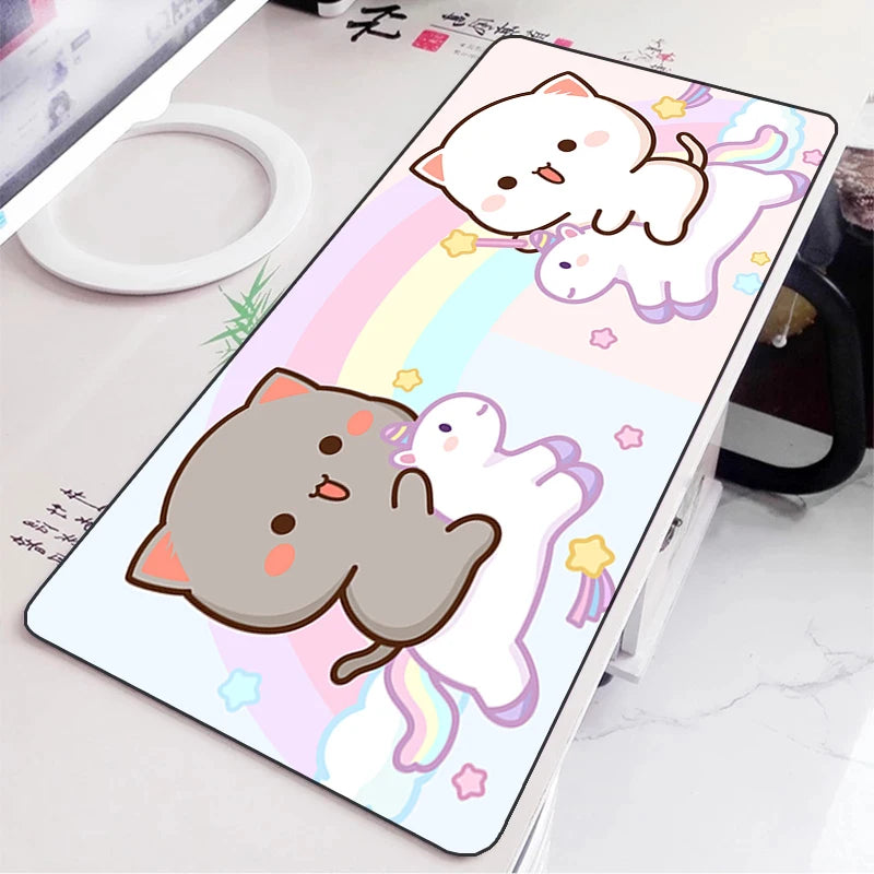 Upgrade your gaming or work setup with the Peach Mochi Cat XXL Gaming Mouse Pad. This oversized mouse pad features a charming anime-inspired design with a soft peach mochi cat, bringing a pop of personality and color to any desk. Designed for both gamers and anime enthusiasts, it offers a large, smooth surface ideal for high-speed gaming, graphic design, or office tasks.