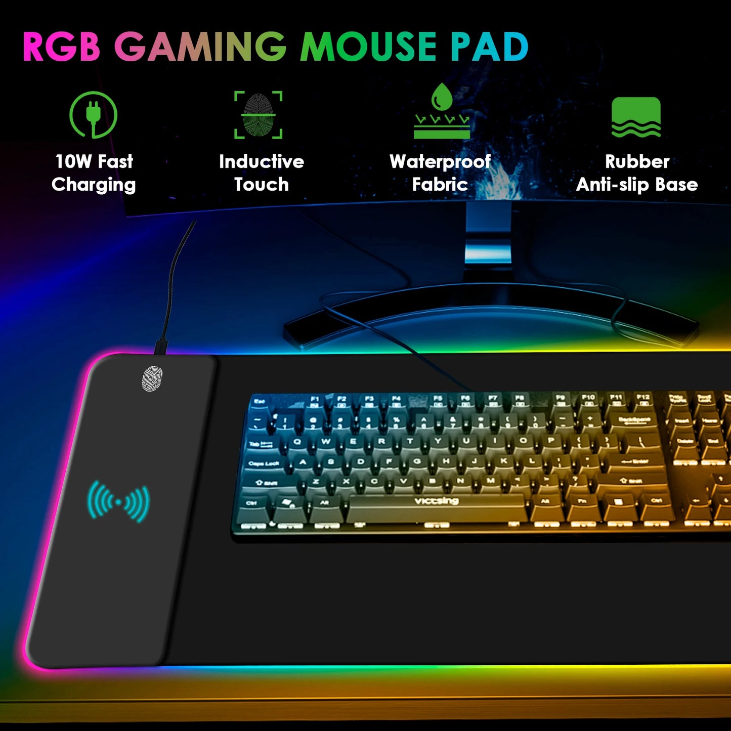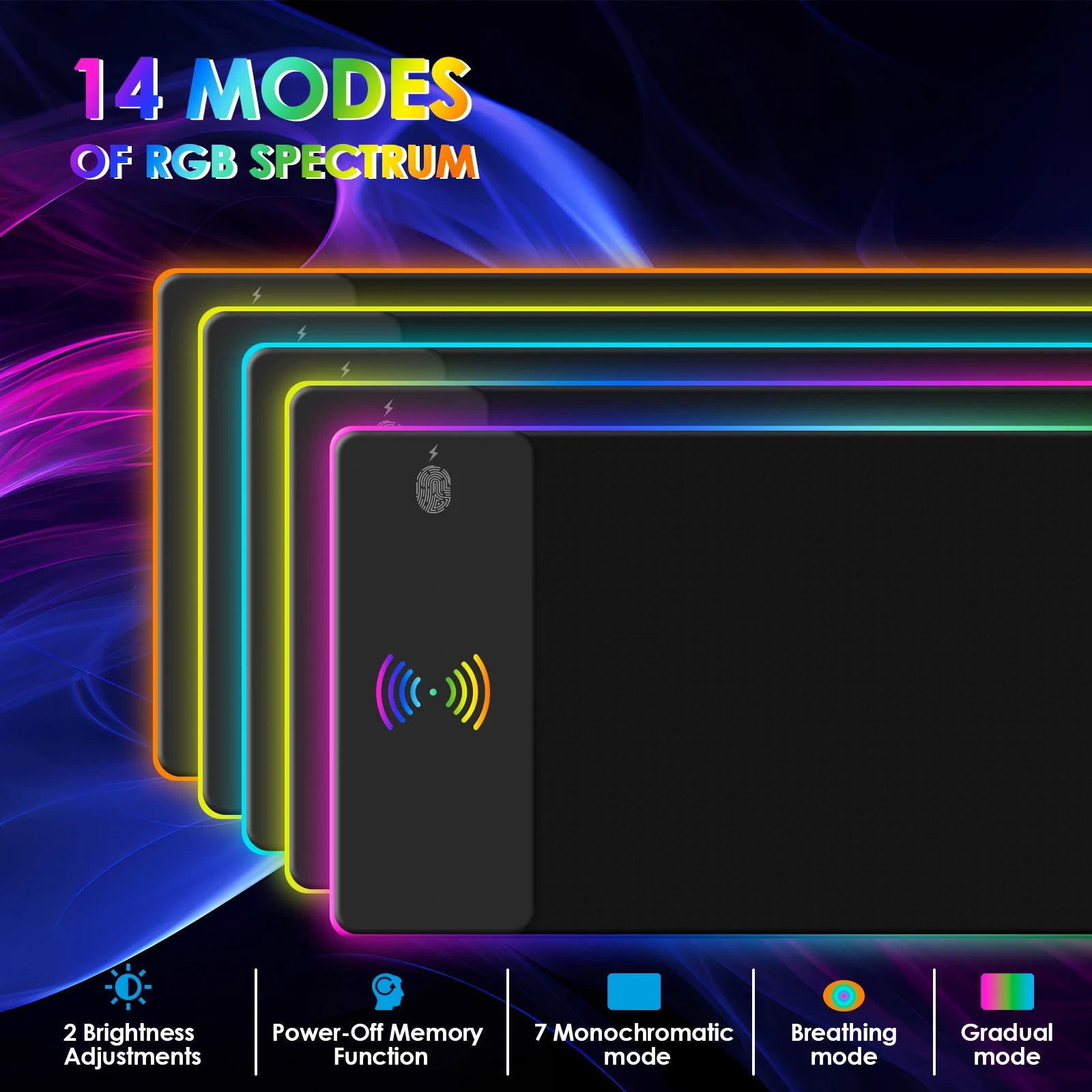 The built-in magnetic wireless charger powers up your devices seamlessly, keeping your desk clutter-free and efficient. Made with waterproof materials, the pad is durable and resilient against spills, ensuring longevity even in intense gaming sessions. Perfectly sized as a desk pad, this mouse pad combines the convenience of wireless charging, responsive gaming performance, and immersive RGB lighting to enhance any setup.