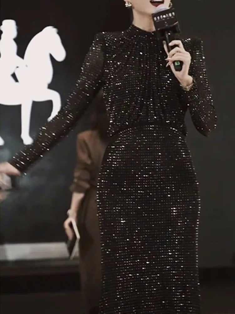 Shine with elegance and grace in the SMTHMA Luxury Rhinestones Long Dress, designed for women who want to make a dazzling impression. Perfect for autumn and spring occasions, this sophisticated party dress features a flattering silhouette adorned with shimmering rhinestones that catch the light from every angle. Crafted from high-quality materials, the dress combines timeless fashion with modern glamour. The sleek design, long sleeves, and flowing hemline offer a balanced blend of chic and comfort, making it an ideal choice for birthdays, evening events, or upscale parties.