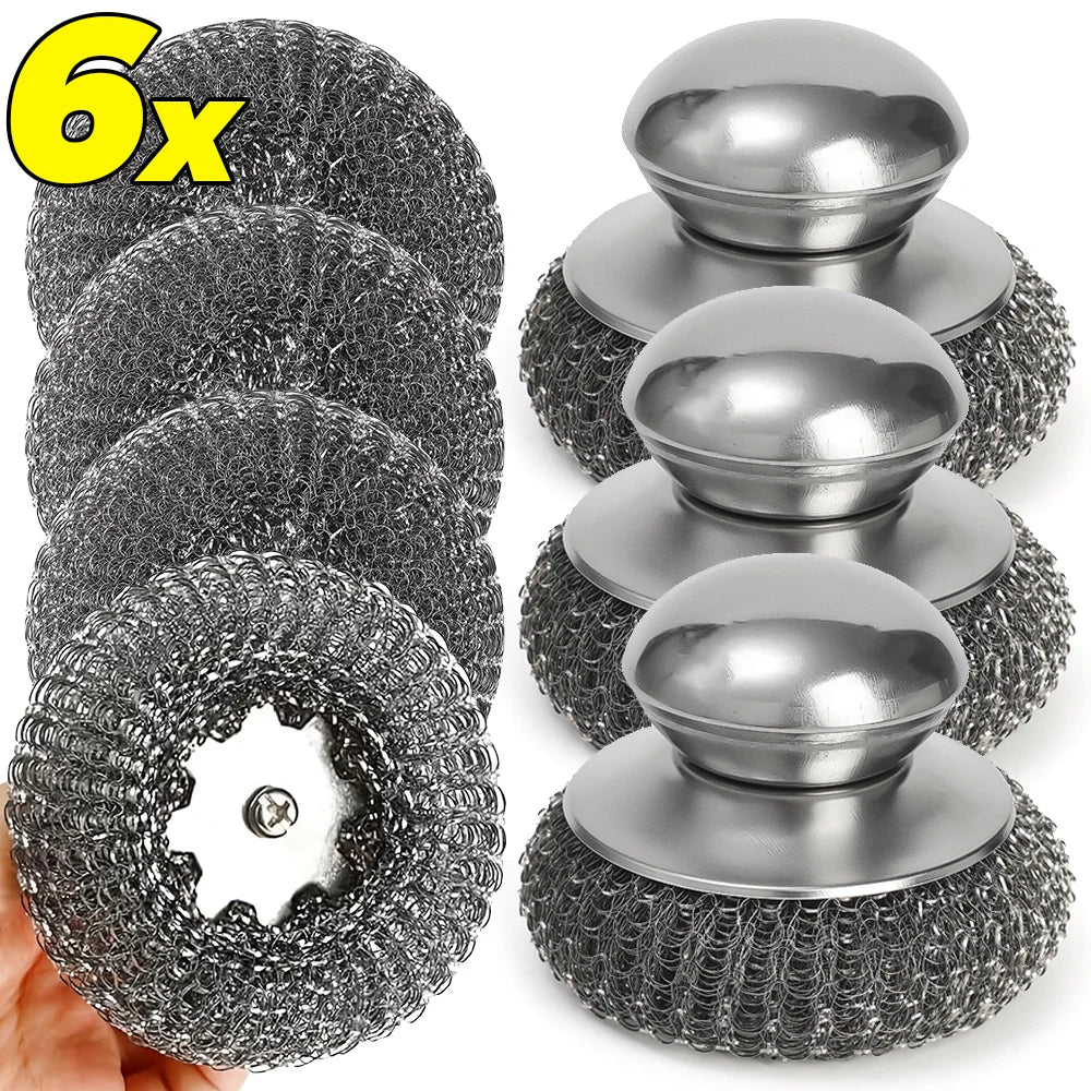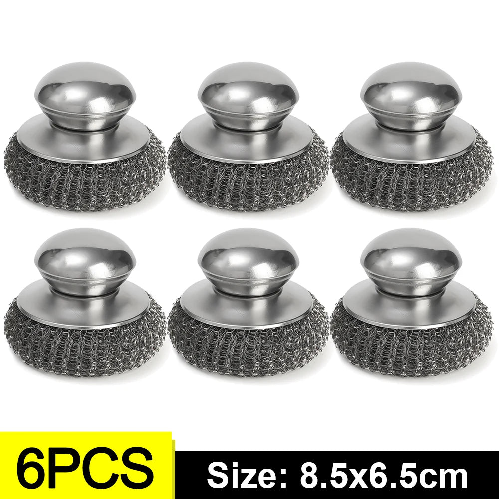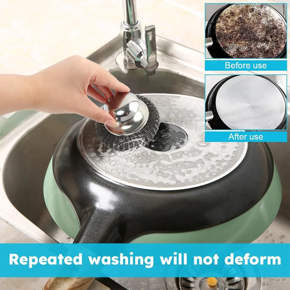 Make your kitchen cleaning easier with this Stainless Steel Dish Scrubber with Round Handle, designed for powerful rust removal and deep cleaning. Each steel ball scrubber effectively tackles burnt food, grease, and stubborn stains from pots, pans, and utensils without damaging surfaces. The round handle offers a comfortable grip, making heavy-duty scrubbing easier and faster. Perfect for daily use, these kitchen cleaning tools are rust-resistant, reusable, and available in sets of 1, 3, or 6 pieces. Whether you're cleaning stainless steel, cast iron, or grill grates, this durable dish brush is a must-have for every household.