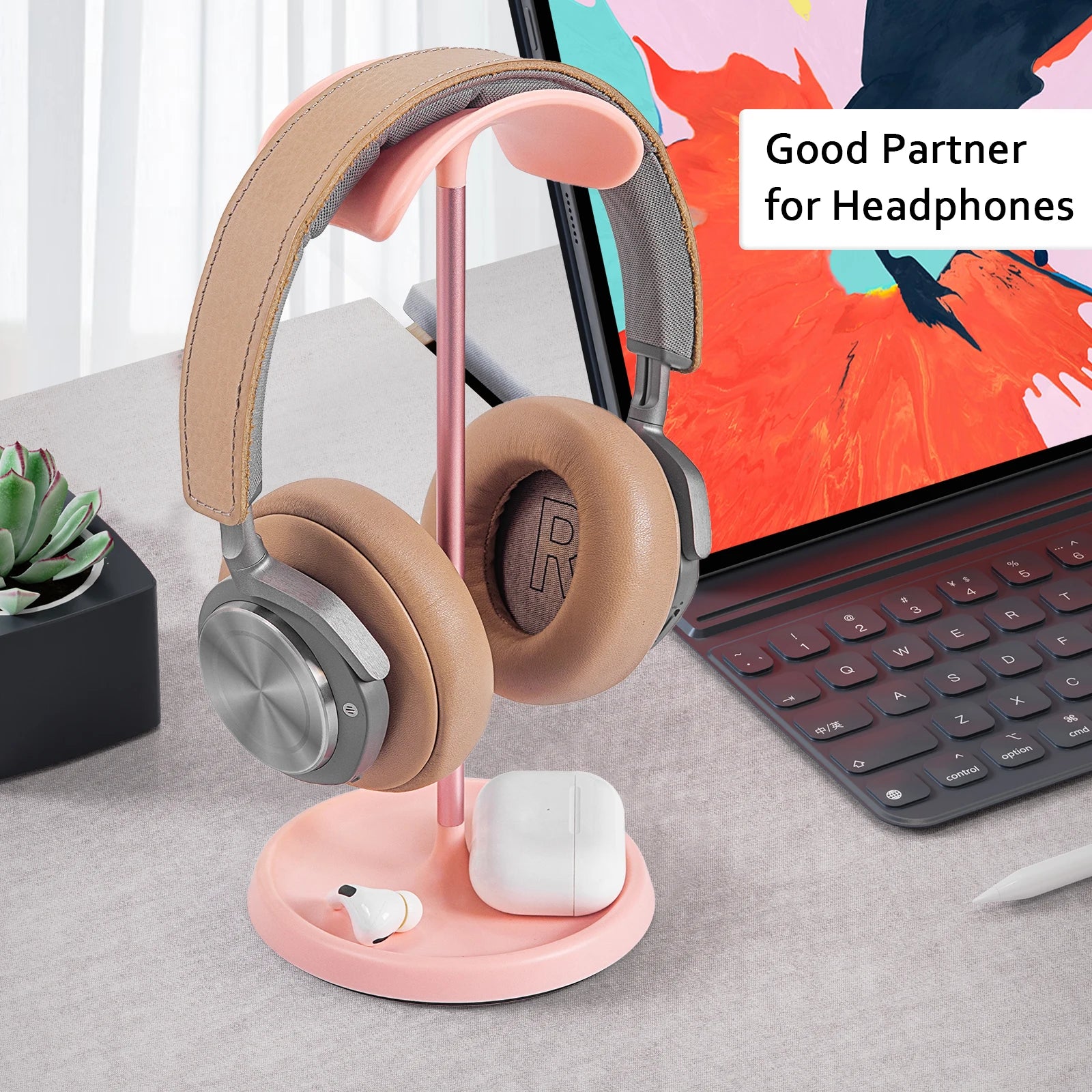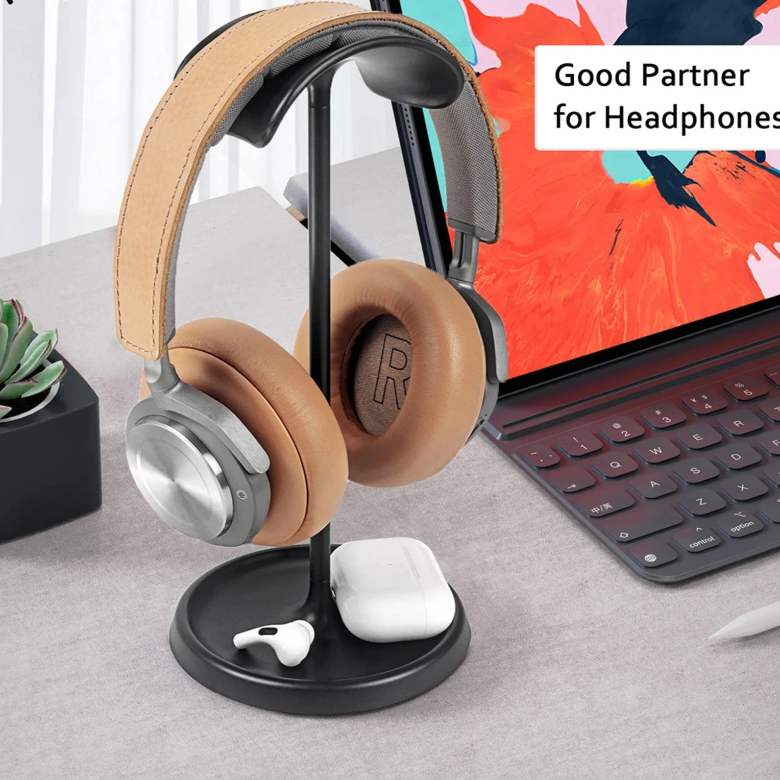 Sturdy Curved Headphone Stand with Storage Tray