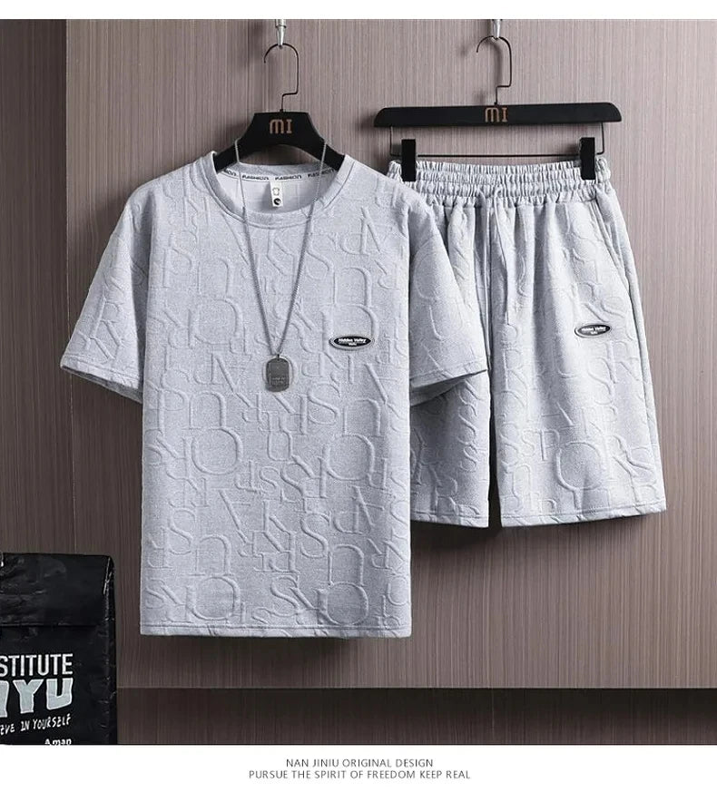 Upgrade your summer wardrobe with the Summer Men's Fashion Brand Casual Sports Set from Superiordeals. Designed for ultimate comfort and effortless style, this set features a short-sleeved T-shirt and matching shorts, perfect for casual outings, sports, or just lounging at home. Crafted from high-quality waffle fabric, the material is breathable, lightweight, and ideal for warm weather. The loose-fit design ensures flexibility and a relaxed, modern look.