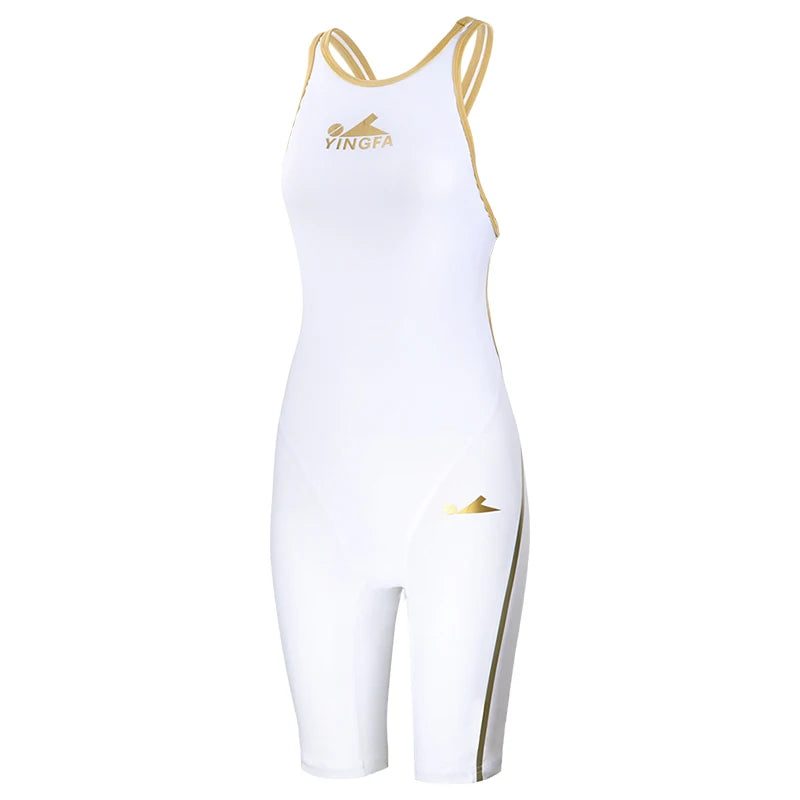 White Fastskin Spandex Competitive Swimsuit for Women Knee-Length Training