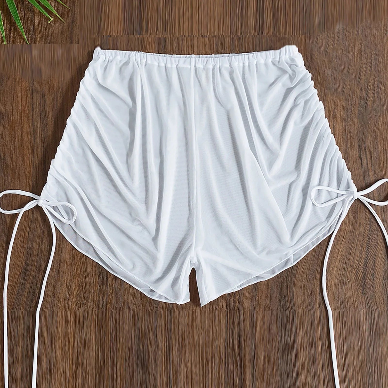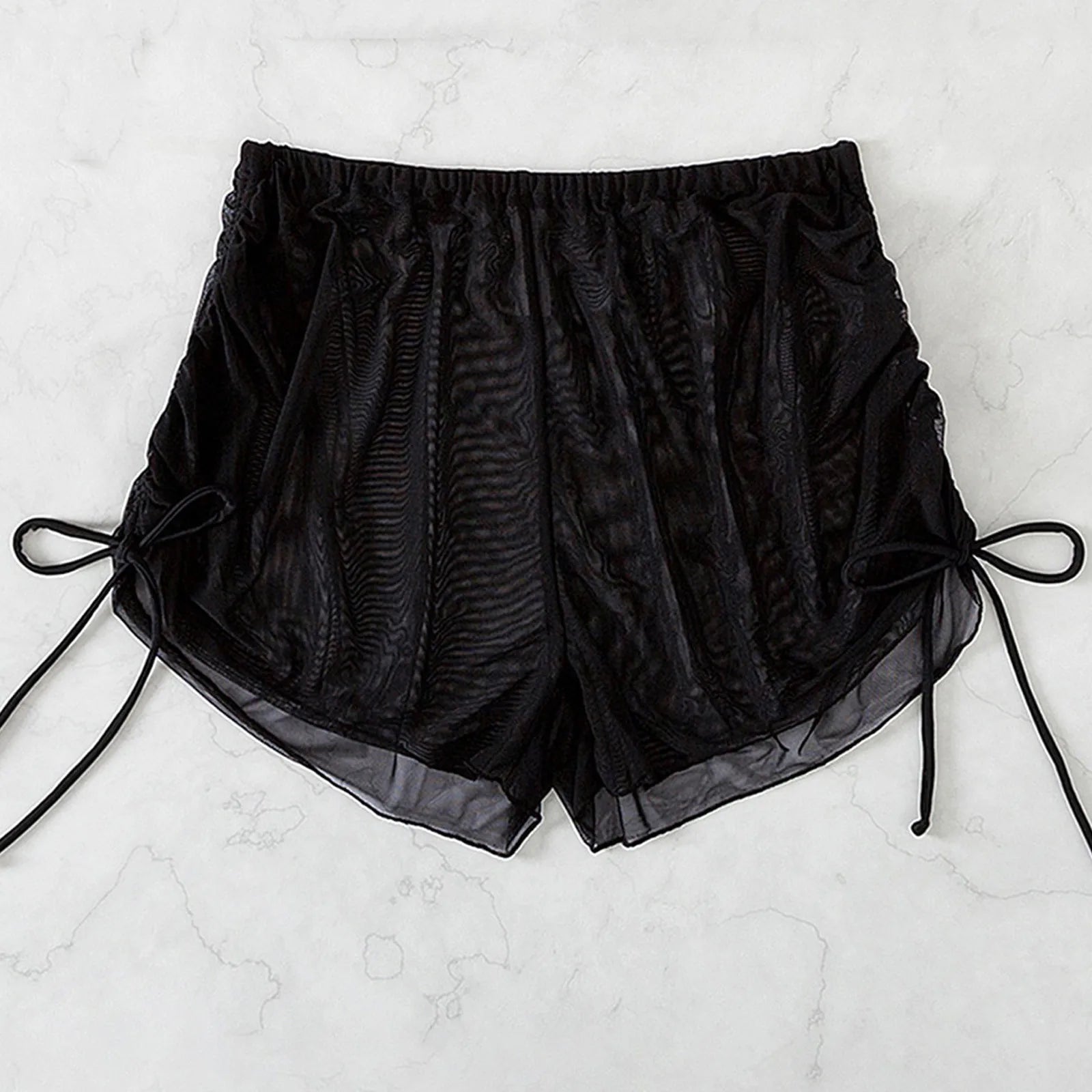 Women’s Sheer Mesh Bikini Trunks High Waist Side Tie Beach Shorts