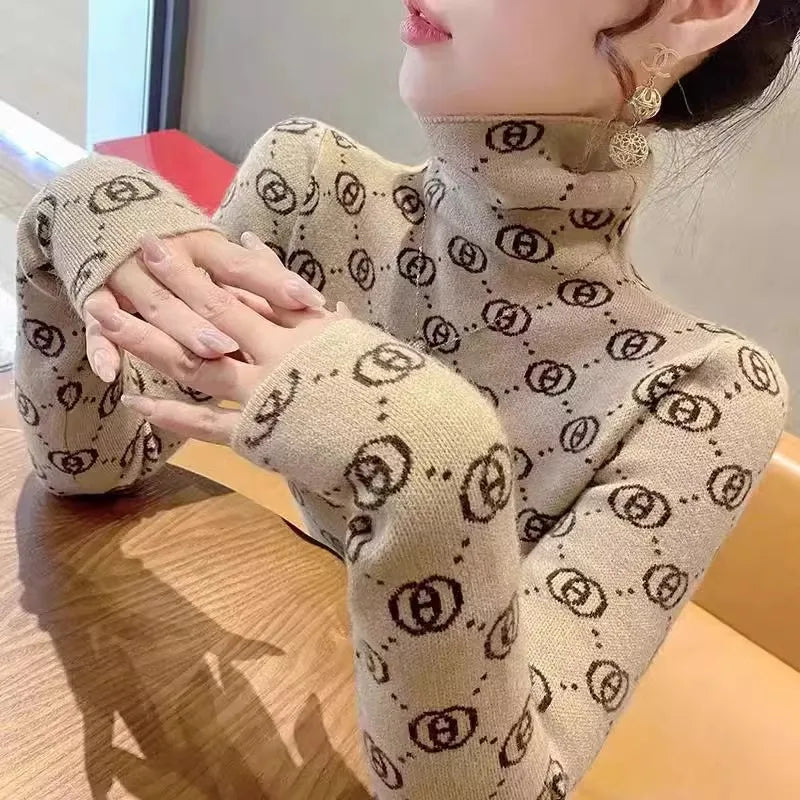 Its elegant jacquard pattern exudes timeless charm, while the turtleneck design provides added comfort and coziness. Whether paired with jeans or skirts, this versatile knitwear is perfect for casual outings, workwear, or evening gatherings.