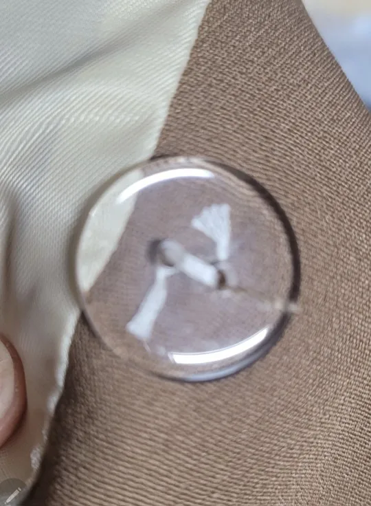 The tone is bad, the button is also white on the beige. Black on white, beige on the jacket in a circle?